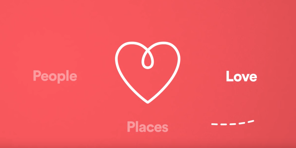 The animation explaining what Airbnb new logo represents with a line circling around to form different shapes that represent people, places and love to eventually form the Airbnb logo.